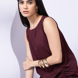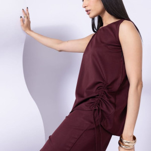 Fit: Smart Fit Fabric Composition: 95% Polyester | 5% Elastane Material: Polyester Twill Sleeve Length: Sleeveless Description: A sleeveless blouse.